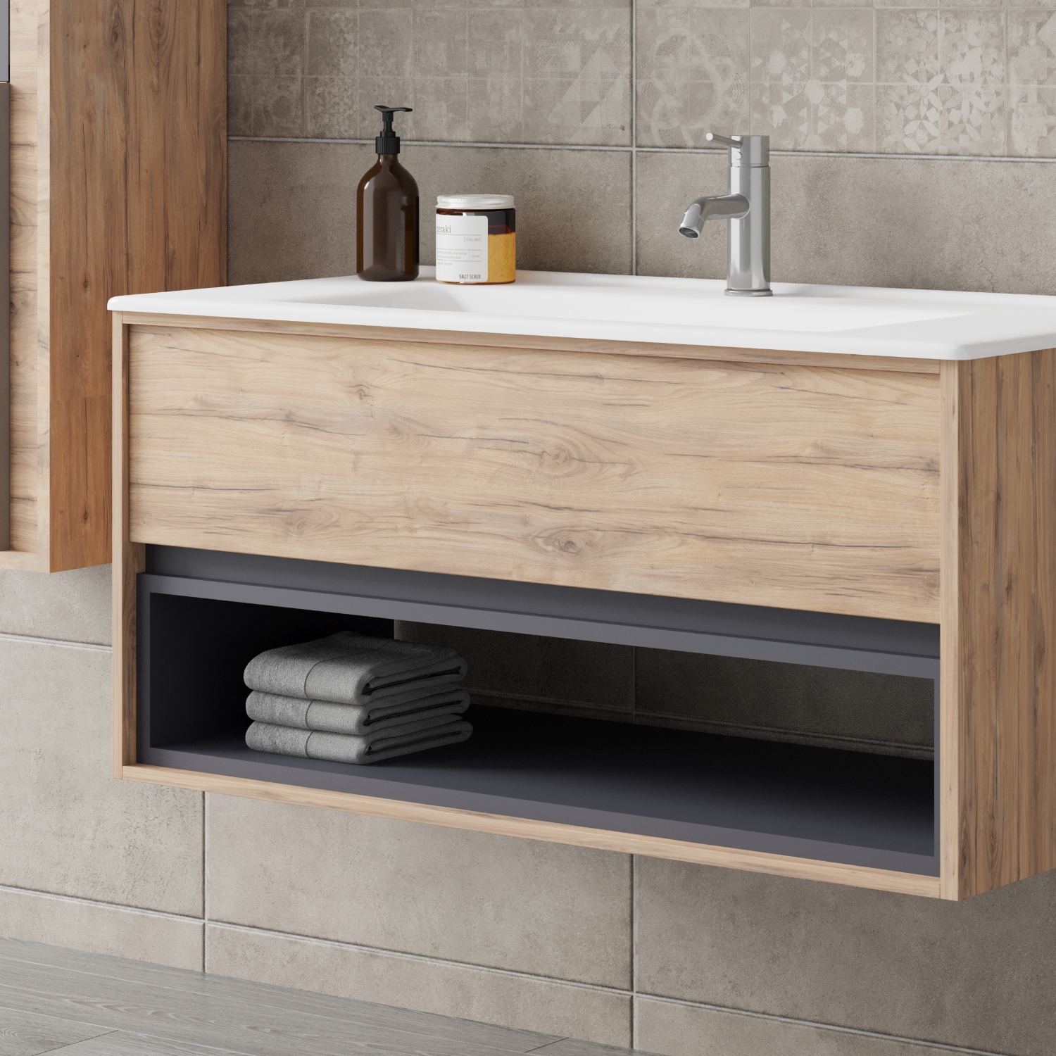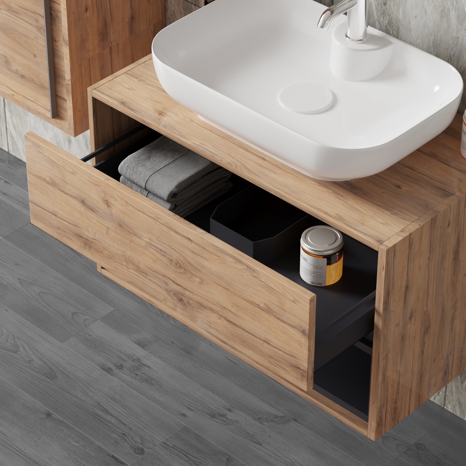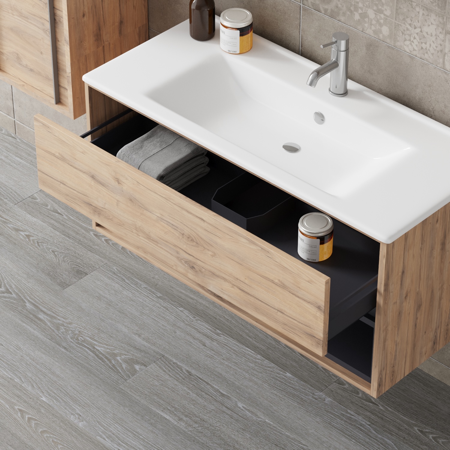The Jena series bathroom vanity cabinet, with its 45 cm depth, is the option you’re searching for if you need storage for your bathroom.